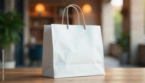 Classic white paper shopping bag, handles intact, paper shopping bag, delivery, white paper