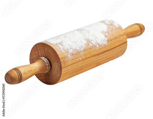 Classic Wooden Rolling Pin with Flour Dust for Baking – Transparent PNG
