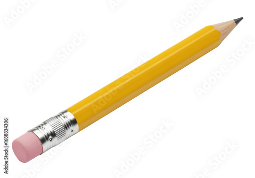 Classic Yellow Pencil with Sharp Point and Pink Eraser – School Supply, Writing Tool, High-Resolution Object Photography, Transparent PNG Overlay