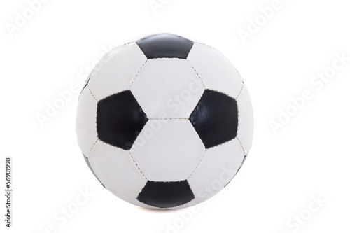 classical black and white leather soccer ball isolated on white