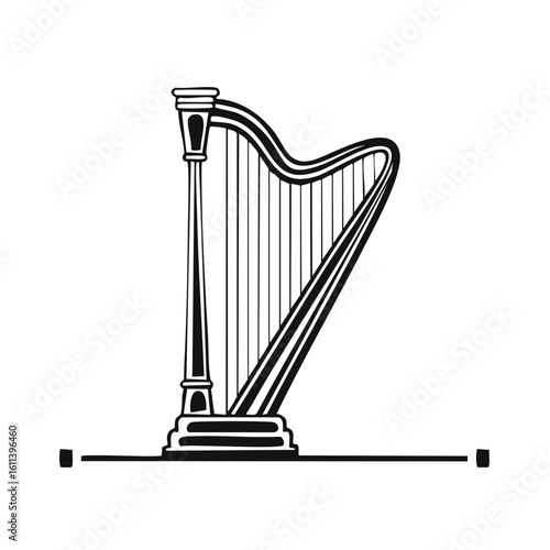 Classical harp string musical instrument black and white vector illustration