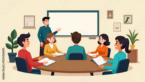 Classroom Book Club Clipart: 2D Cartoon Discussion Circle Emblem