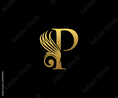 Classy Gold Letter P Logo Icon . Initial Letter P Design Vector Luxury Gold Color.Print monogram initials stamp line art sign symbol.