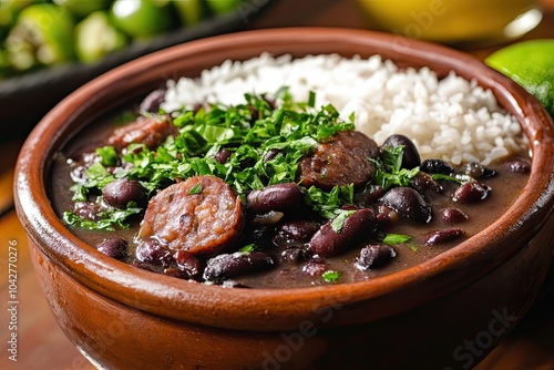 Clay Bowl of Black Beans, Rice, Sausage, and Parsley