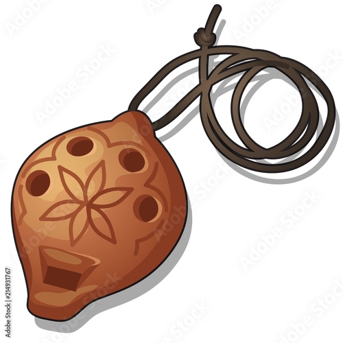 Clay wind musical instrument isolated on white background. Vector cartoon close-up illustration.