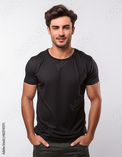 Clean and Classic: Black T-Shirt on Young Man with White Background