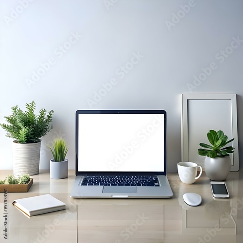 Clean and minimalist mockup of a laptop with a blank screen. perfect for showcasing website designs. app interfaces. or product presentations.