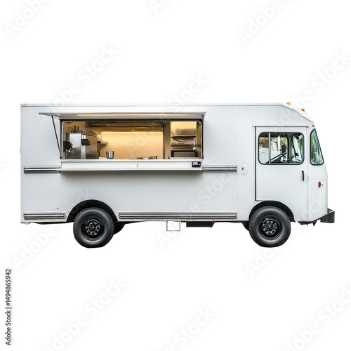 Clean and Modern Food Truck Ready for Service in an Urban Setting on transparent background