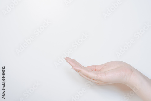 clean and protect COVID-19 virus activity from woman hand after clean by alcohol gel with white isolated background