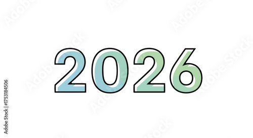 Clean and simple year 2026 text with subtle blue and green gradient, isolated on transparent