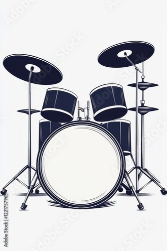 Clean and Thin Crosshatch Drum Set Illustration with High Fidelity Details