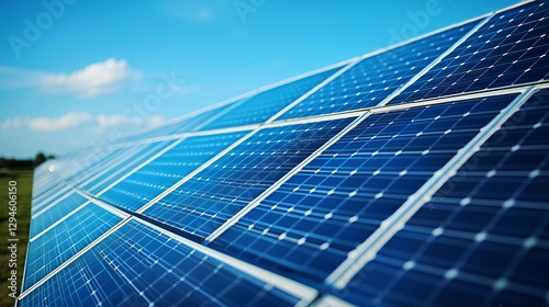 Clean Energy Solar Panels Blue Sky Renewable Power Sustainable Technology Alternative Energy Source Eco Friendly Photovoltaic Cells Electric Power