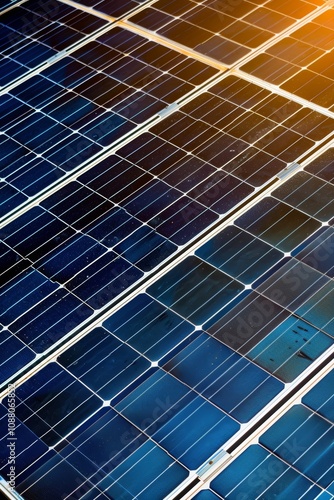 Clean Energy Solution Close-Up of Solar Panels Reflecting Sunlight, Sustainable Power Generation