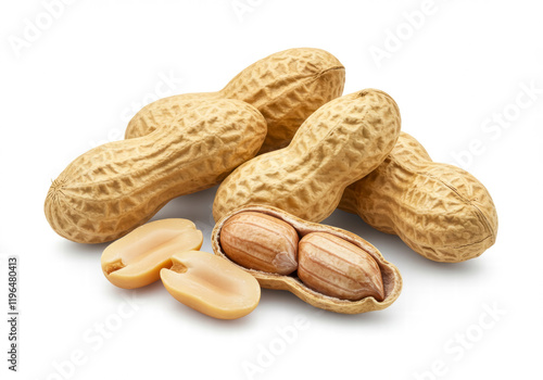 Clean group of peanuts isolated on white background, package design element with clipping path