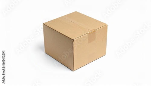 Clean Isometric View of a Sealed Brown Cardboard Shipping Box on White.