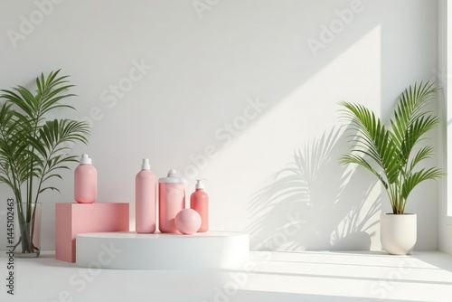 Clean minimalist product display on white backdrop, wood, natural, shine
