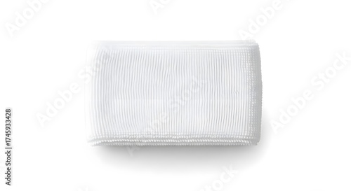 Clean, neatly folded white textile isolated on white, showcasing pristine fabric texture and minimalist design
