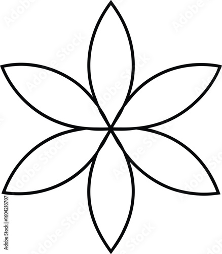 Clean six petal floral shape line art isolated on transparent background
