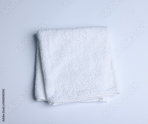 Clean towel on white background, top view