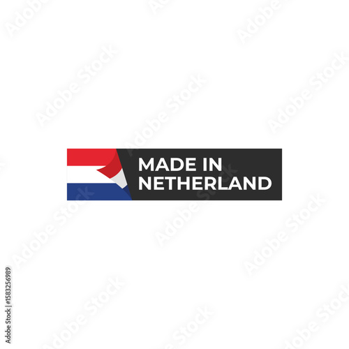 Clean vector badge with text “Made in Netherlands” and Dutch flag design