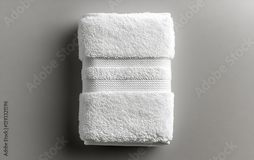 Clean White Cotton Towel Folded on Grey Surface Promoting Hygiene Comfort and Minimalist Lifestyle : Generative AI