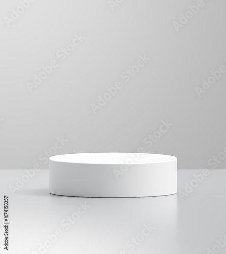Clean white cylindrical pedestal display stand on a subtle gray studio background white background