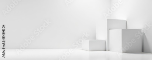 Clean white geometric shapes, subtle grayscale gradients , grey, digital, contemporary