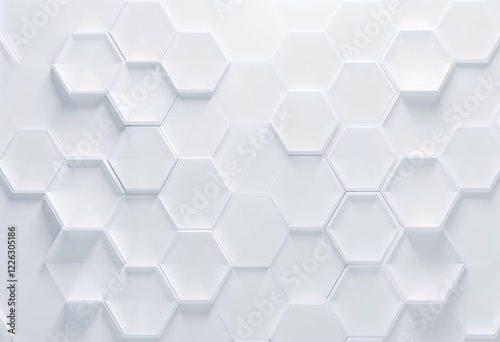 Clean White Hexagon Pattern with Subtle Light and Shadow Depth