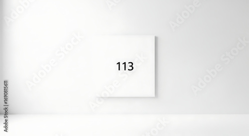 Clean White Studio Space Featuring a Floating Panel with Number 113