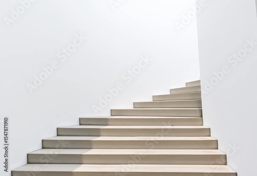 Clean white wall backdrop, concrete stair steps ascending, house, lines