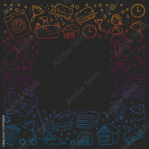 cleaning services company vector monochrome pattern on black background, drawing gradient.