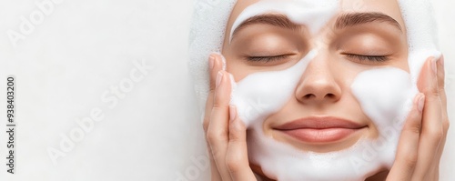 Cleansing the face with a foamy cleanser, skincare routine, smooth and clean