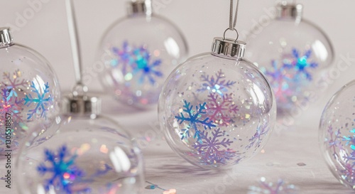 Clear Christmas Ornaments with Colorful Snowflake Glitter Decorations for Holiday Season