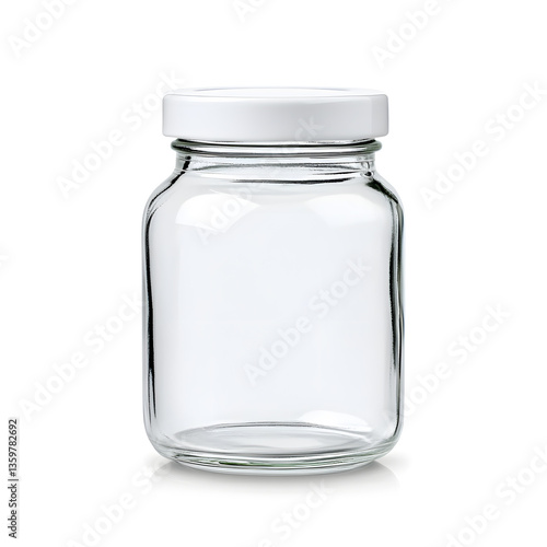 Clear empty glass jars with white lid mock up isolated on white