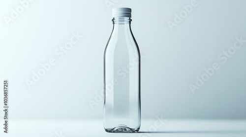 Clear glass bottle with a screw cap, ideal for packaging beverages, water or liquids, showcasing minimalist design and versatility.