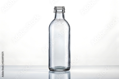 Clear Glass Bottle with Water Droplets, Studio Shot, Empty