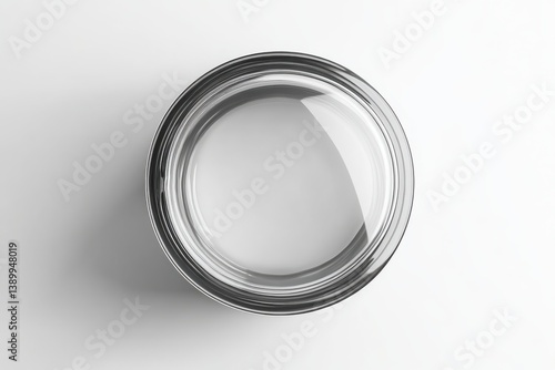Clear glass bowl filled with water overhead view simple clean design bright studio lighting