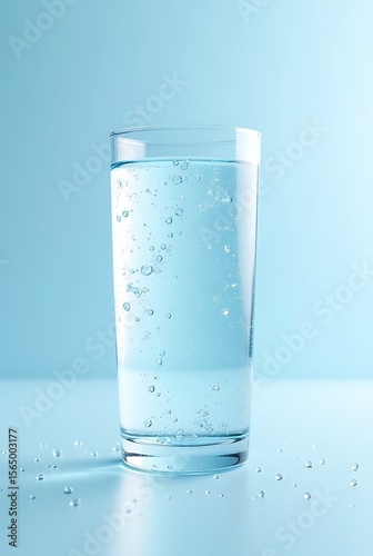 Clear glass filled with sparkling water and bubbles image