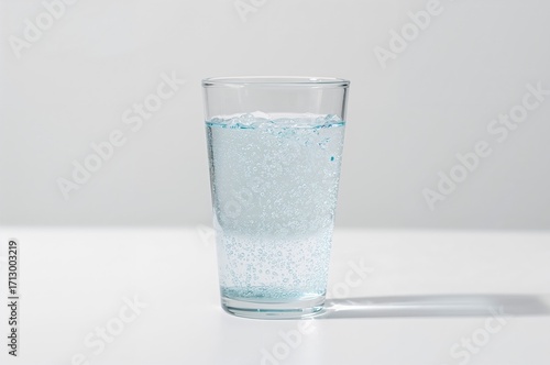 Clear glass filled with sparkling water on a white background