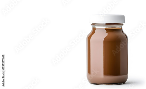 Clear glass jar filled with hazelnut chocolate spread mock up, isolated on white background