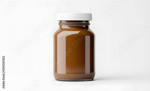 Clear glass jar filled with hazelnut chocolate spread mock up, isolated on white background