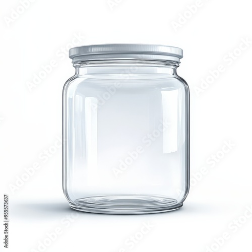 Clear glass jar isolated on a white background for creative storage solutions or food preservation ideas
