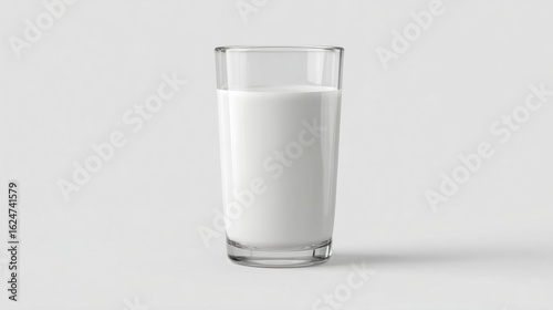 Clear Glass of Fresh Milk on Grey Background with Soft Shadows