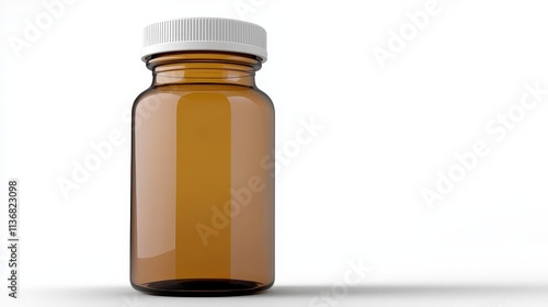 Clear Insight into a Brown Glass Jar with White Cap on a Neutral Background, Perfect for Medicine Storage, Herbs, or General Use in Various Applications