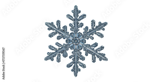 Clear intricate snowflake shows icy texture on black, ideal for winter themes, product showcases, or science presentations.