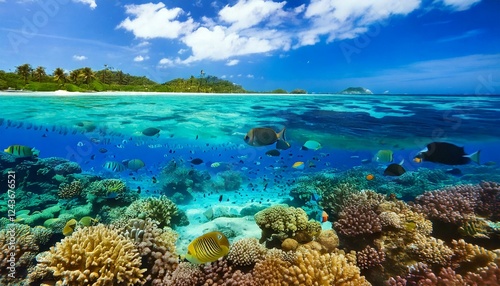 clear lagoon with tropical fish and coral