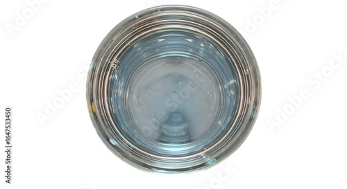 Clear liquid fills glass; top-down view. Bubbles add texture. Perfect for product photography, science illustrations, or branding elements.