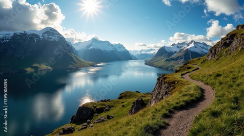 Clear photo of a location in Norway at midday, with sunny weather, captured from a wide panoramic angle.