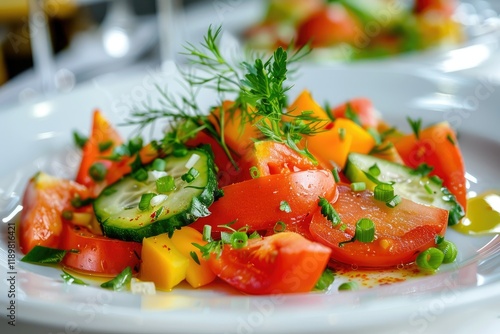 Clear Pixel Picture of Close Up Photo of Fresh Salad with Vegetables in White Plate