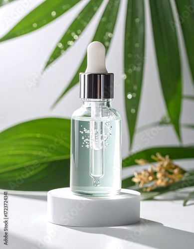 Clear serum on a white pedestal